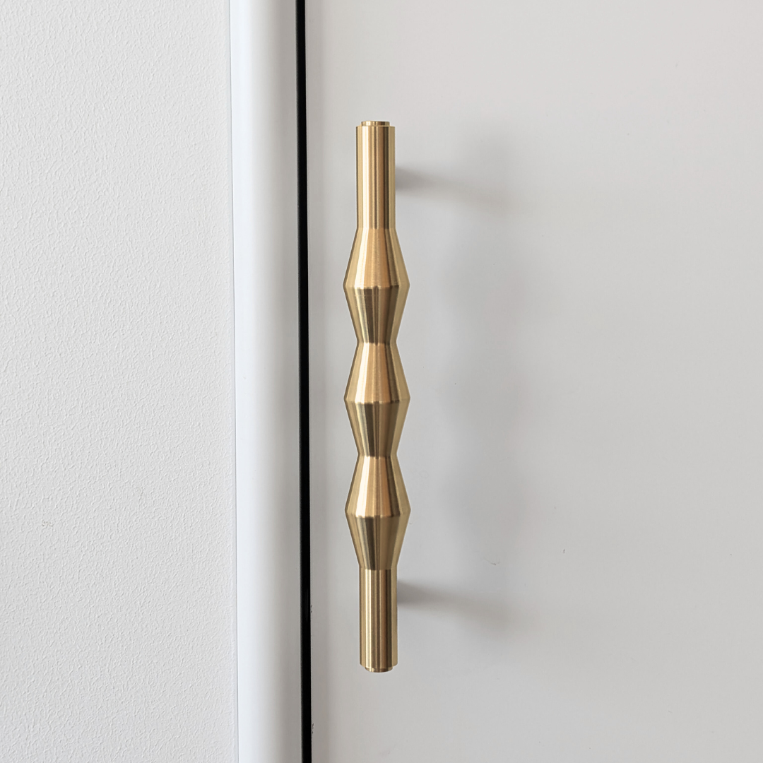 With its finely turned surface and unique shape, the VILDE 160 (M) BRASS brass handle is perfect as a detail in the kitchen, bathroom, wardrobe or on the fronts of modern dressers. Its sophisticated appearance makes it serve both a practical and decorative function.