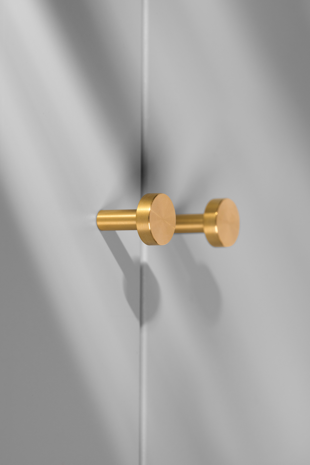 The gold Nena S knob is one of our most popular models. It is made of uncoated brushed brass, which will patina and darken over time. The golden brass knobs are the perfect choice for both minimalist interiors and styled interiors. Its simple form, depending on the interior, can become a decoration or a detail that blends in with the surroundings. Nena S has a very ergonomic shape that makes it a comfortable handle for most types of furniture.