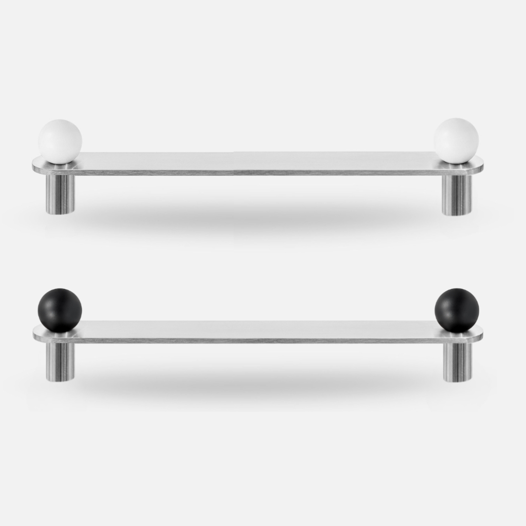 Minimalistyczna forma uchwytu porządkuje zabudowę meblową i nadaje jej elegancki, biżuteryjny charakter. Charakterystycznym elementem są dwie chromowane kulki, dostępne w różnych wariantach kolorystycznych: złotym, srebrnym, miedzianym, niebieskim, czerwonym, białym oraz czarnym. Zestawienie matowej powierzchni szczotkowanej stali z połyskiem kulki tworzy subtelny kontrast faktur, podkreślając nowoczesny i wyrafinowany design uchwytu.