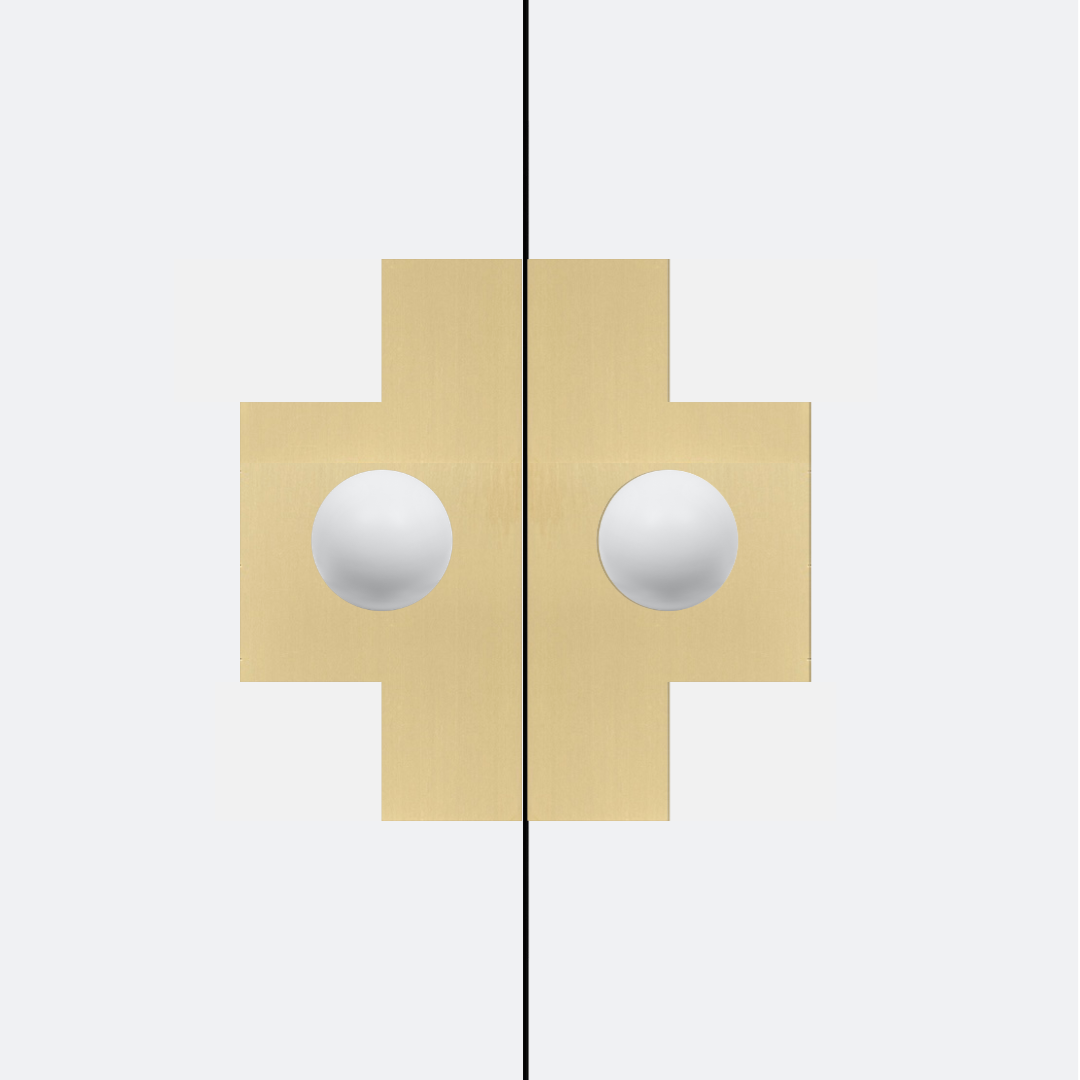 Połączenie matowej, szczotkowanej powierzchni podkładki z połyskiem kulki tworzy wyraźny kontrast faktur, podkreślając biżuteryjny charakter uchwytu. Forma PILLOW CROSS nadaje meblom wyrazistości i dekoracyjnej głębi, nie tracąc przy tym nowoczesnej lekkości.